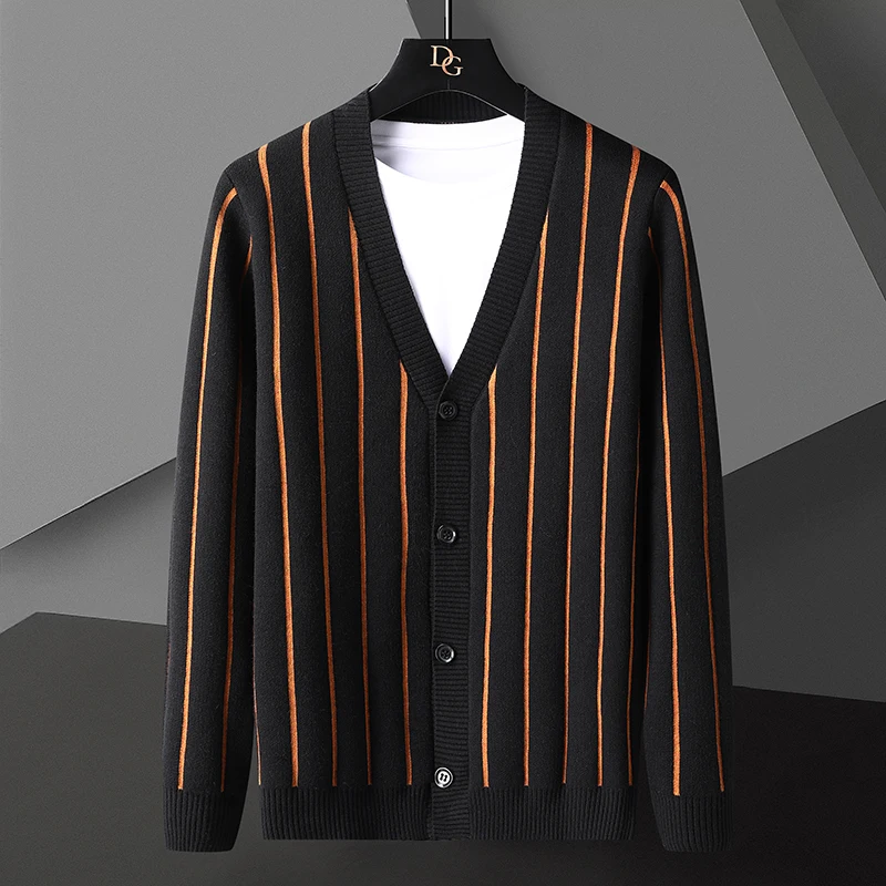 Новинка 2021, осенне-зимний брендовый роскошный кардиган, мужской модный Дизайнерский полосатый кашемировый свитер, пальто, Повседневная вязаная мужская куртка