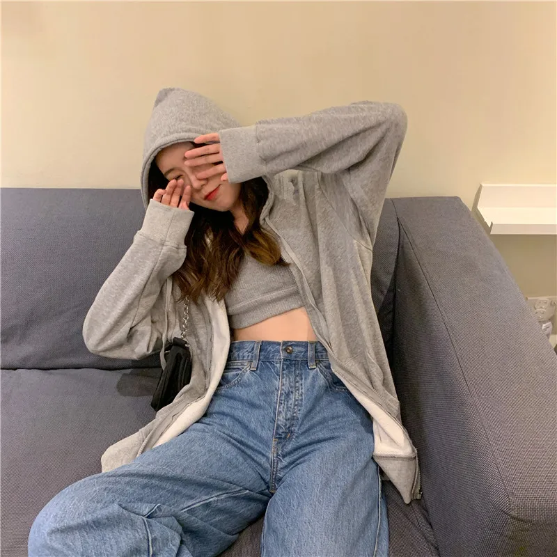 Куртка Базовая Женская однотонная с карманами, мягкая нежная Праздничная Классическая стильная популярная на молнии с капюшоном для подростков, 3 цвета, Ulzzang, весна