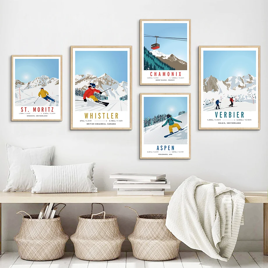 Настенная картина для сноуборда, лыжного спорта, Франции, настенная Картина на холсте, постеры и принты в скандинавском стиле, настенные картины для декора гостиной