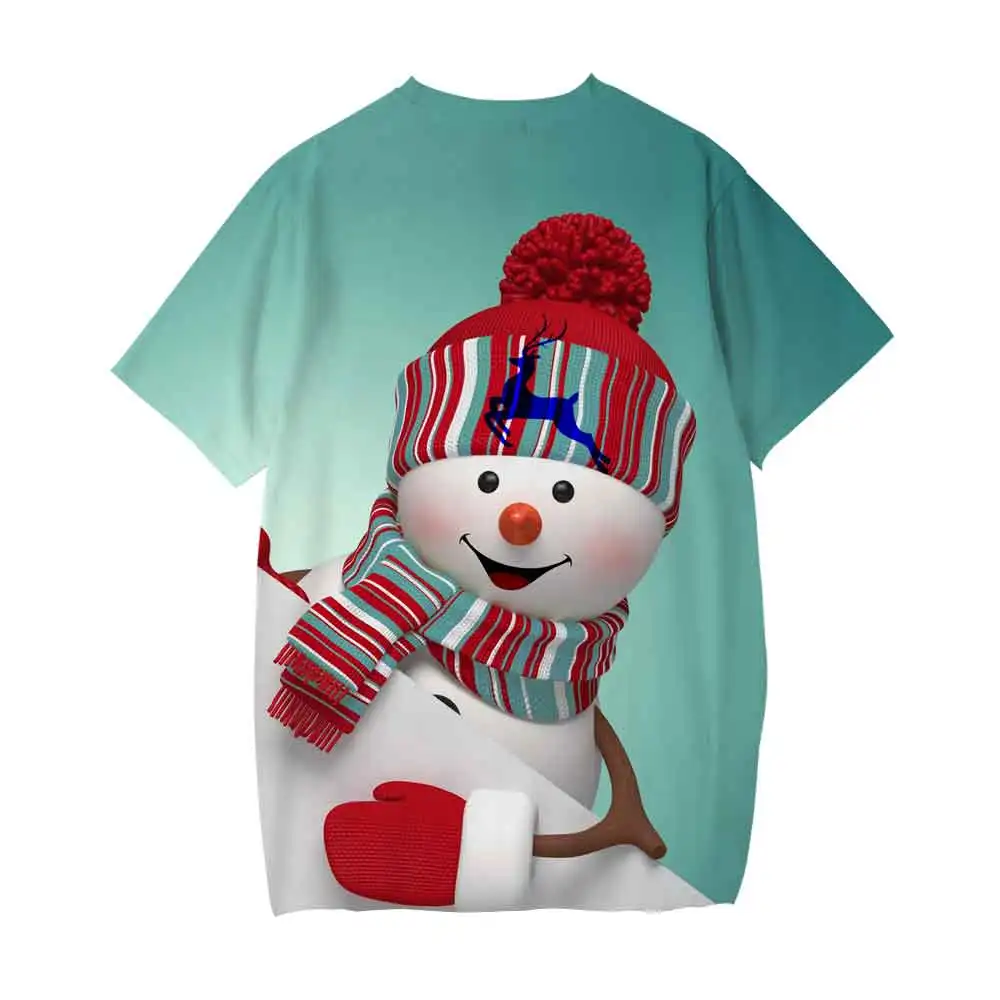 Детская Рождественская футболка с рисунком снеговика для девочек, одежда с Санта-Клаусом, Повседневная футболка с 3D мультяшным принтом, футболка 3-14 лет