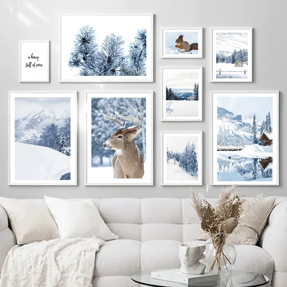 Настенная картина с изображением зимней Снежной Горы оленя лисы на ...