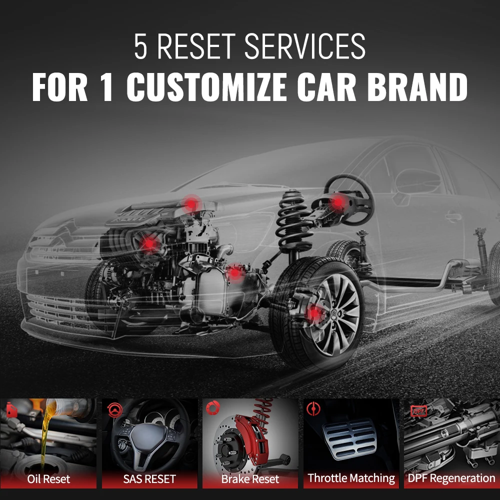 1. Обслуживание сброса масляной лампыПозволяет выполнить сброс для нового расчета системы жизнедеятельности моторного масла после изменения масла.2. Сброс электронного стояночного тормоза EPBЭто важно для поддержания безопасности и эффективности электронной тормозной системы.3. Сброс дизельного фильтра DPFСпециально работает для дизельных Сажевых фильтрующих систем с регенерацией DPF, замена компонентов DPF после замены блока управления двигателем.4. Сброс датчика рулевого управления SASПомогает очистить воспоминания датчика угла поворота руля и играет важную роль в калибровке датчика угла руля.5. Адаптация дроссельной заслонкиКорпус дроссельной заслонки представляет собой трубу с поворотным плоским клапаном (бабочкой), которая используется для контроля количества воздуха, входящего в двигатель. В автомобиле с электронным топливом Датчик положения дроссельной заслонки и датчик воздушного потока связываются с компьютером, который поставляет соответствующее количество топлива, необходимое для инжекторов. Необходимо повторно изучить положение датчика дроссельной заслонки после очистки или ремонта.