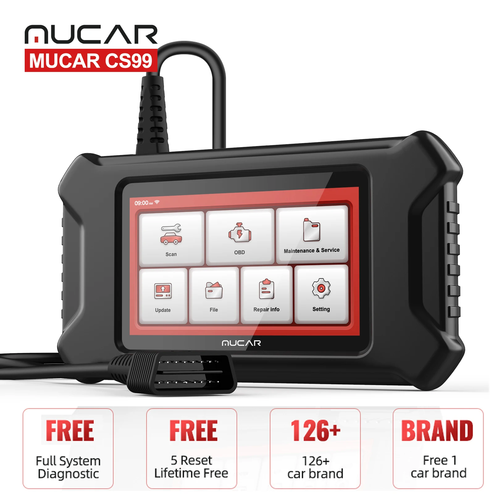 5 дюймов Автомобильный инструменту диагностики. Он представлен системой plug and play android очень прост в использовании.Бесплатное обновление программного обеспечения. MUCAR CS99 является передовым диагностическим инструментом OBDII, разработанным THINKCAR, предлагает диагностическое программное обеспечение, бесплатное обновление в течение всего срока службы.