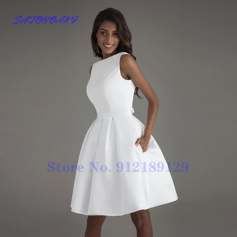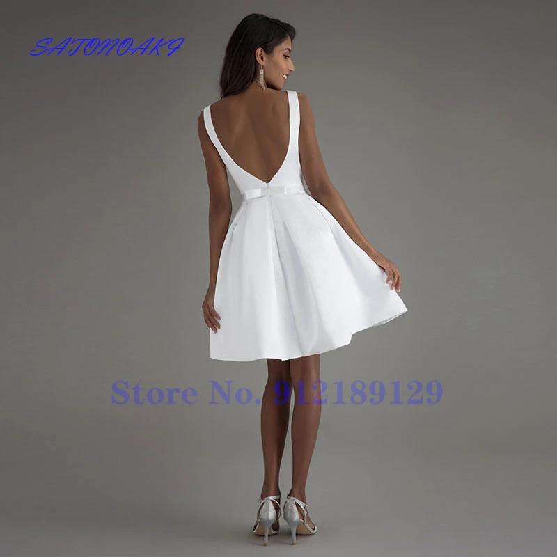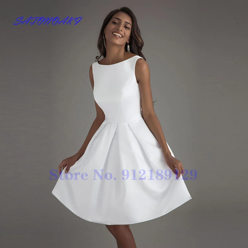 Женское Короткое свадебное платье, простое Пятнистое платье с круглым вырезом, без рукавов, с открытой спиной, платье невесты