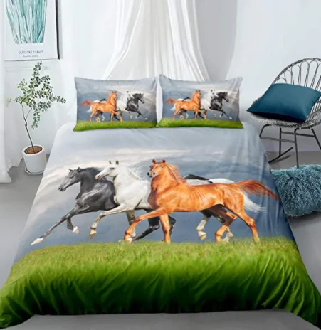 Комплект постельного белья с рисунком лошади, односпальный Комплект постельного белья, односпальный, односпальный, двуспальный, двуспальный, большого размера, с рисунком животных, лошадей, детская, для спальни, 3D 001