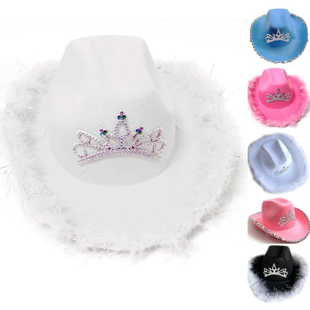 Фетровая шляпа с тиарой, розовая, для женщин, ковбойские шляпы для ...