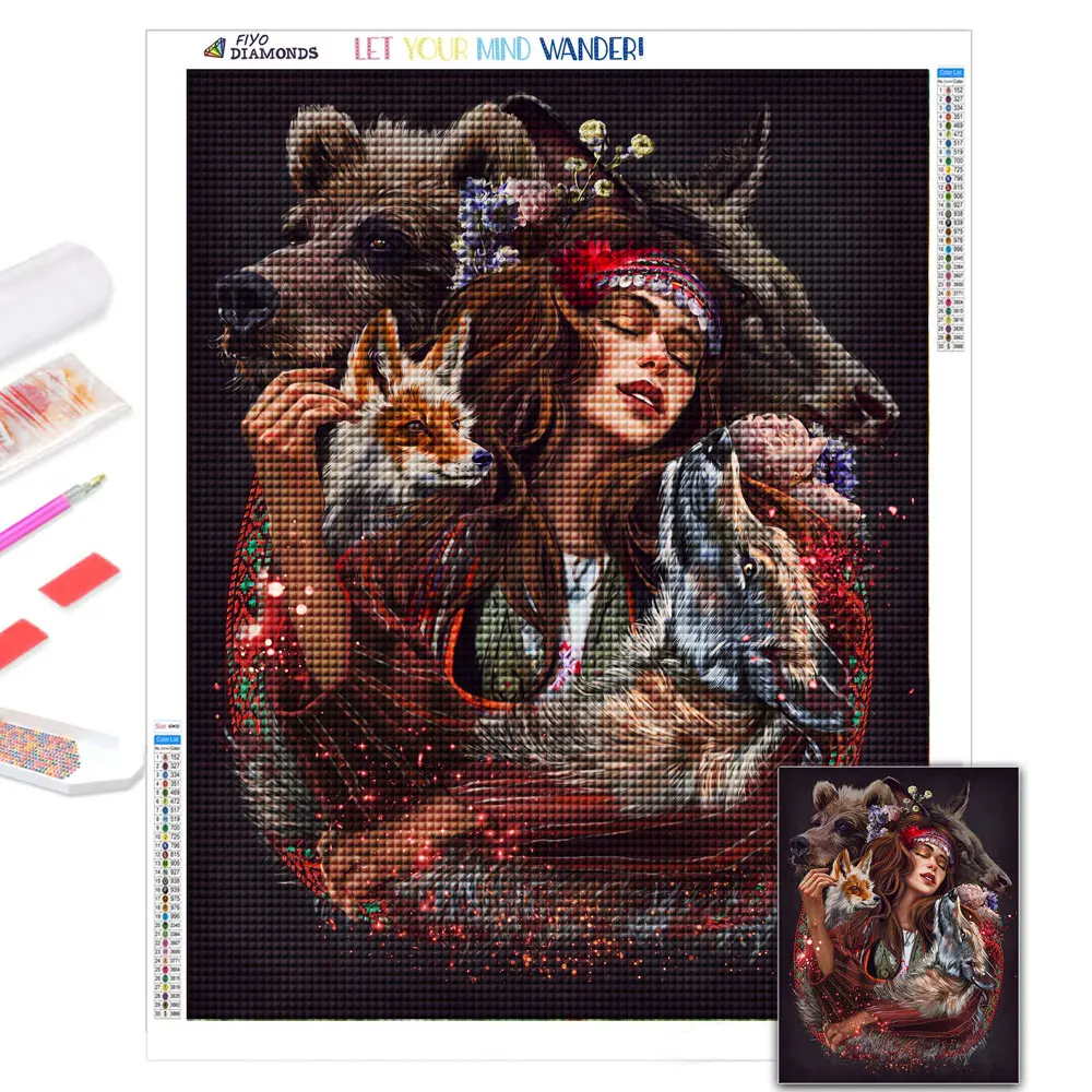 Алмазная живопись 5D сделай сам, женщина, животное, полная Алмазная...