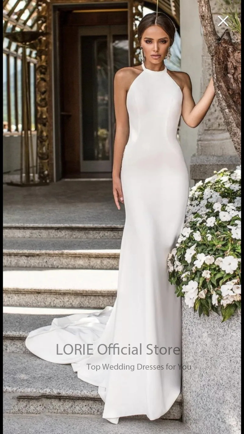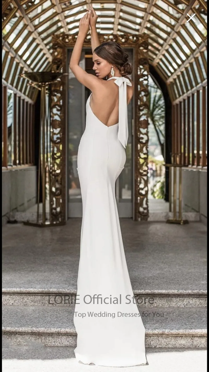 Современные свадебные платья LORIE 2022, свадебное платье с лямкой на шее и юбкой-годе, простое белое, цвета слоновой кости, с открытой спиной, Формальное свадебное платье, простое индивидуальное изготовление