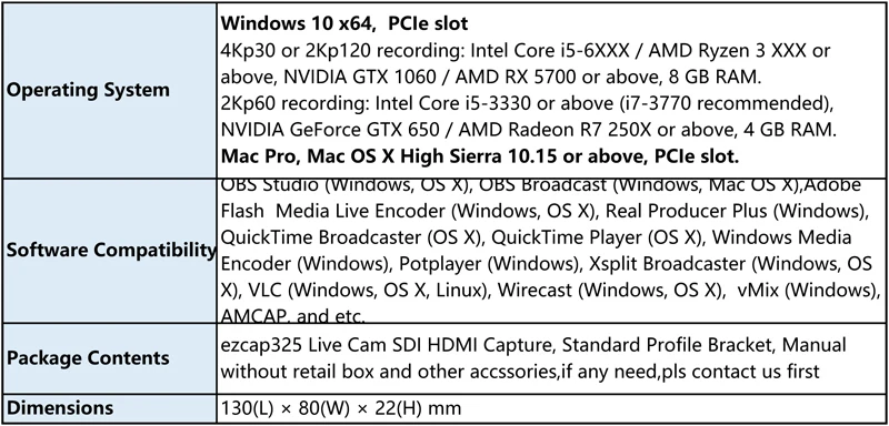 Mac Pro, MacOS X High Sierra 10,15 и выше, PCI-E X1slot