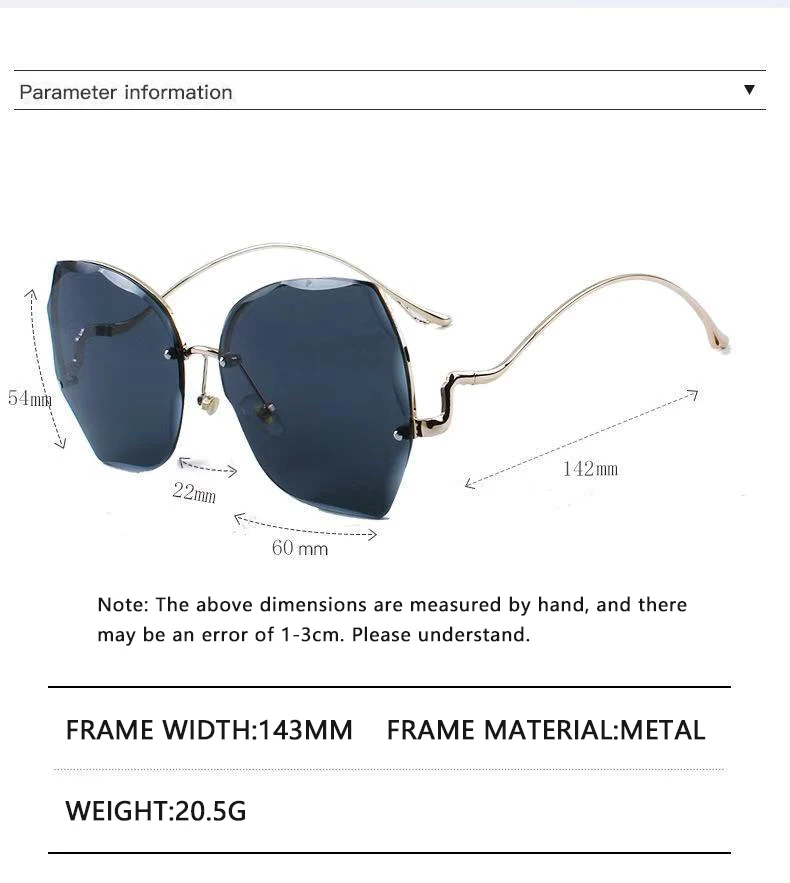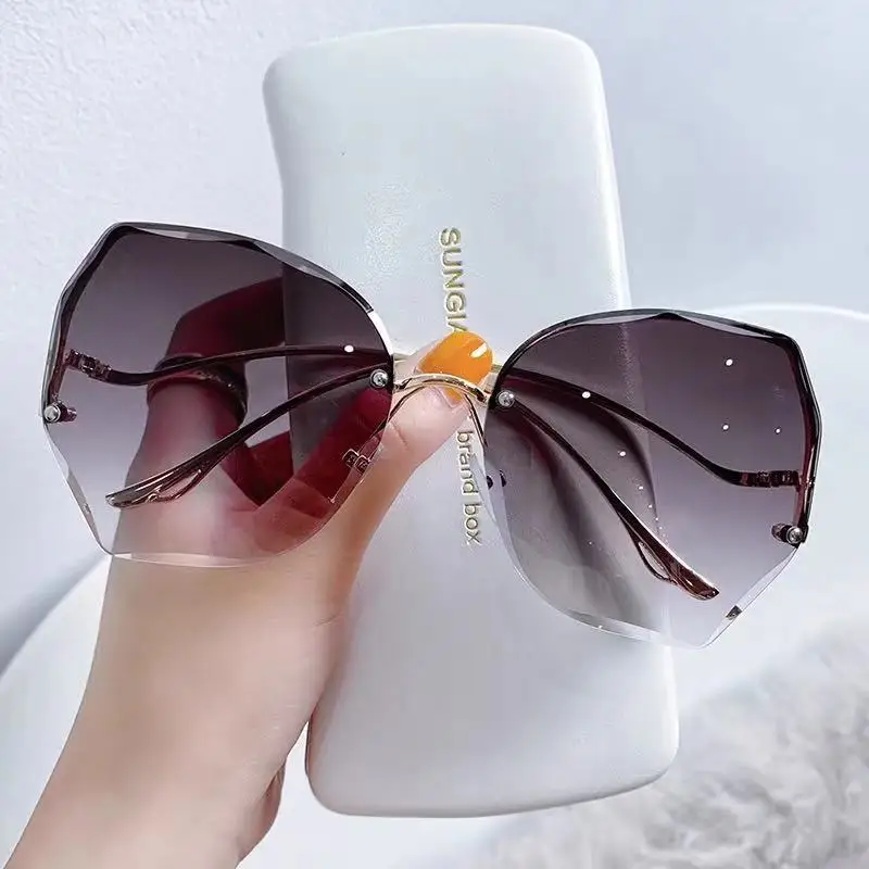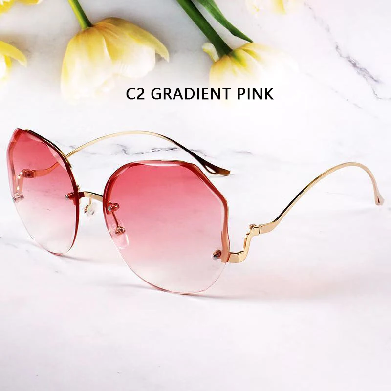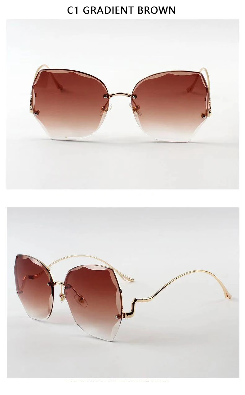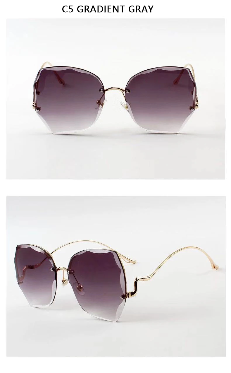 Солнцезащитные очки без оправы для мужчин и женщин, модные брендовые дизайнерские винтажные, с режущими линзами в стиле ретро, с металлическими изогнутыми дужками и градиентными линзами