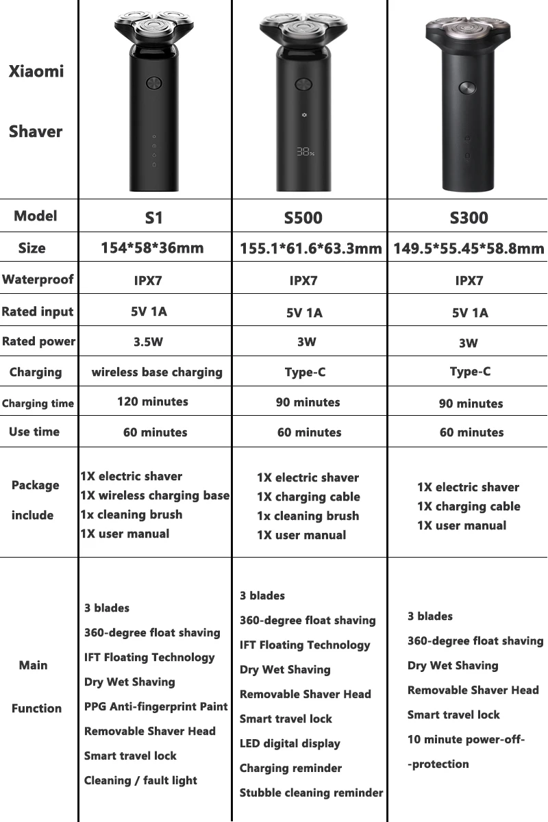 Электробритва Xiaomi Mijia S500 S300 S1 для мужчин, бритва для сухого и влажного бритья, триммер для бороды, моющаяся машинка с 3 плавающими головками