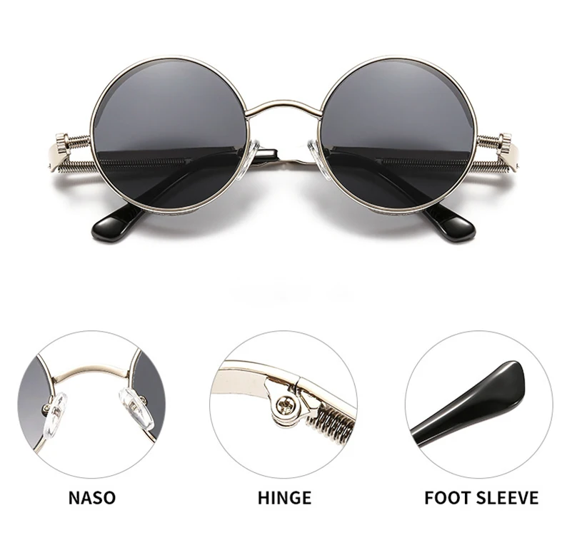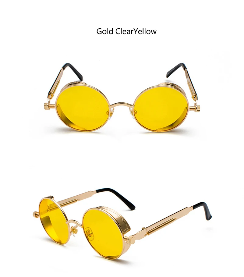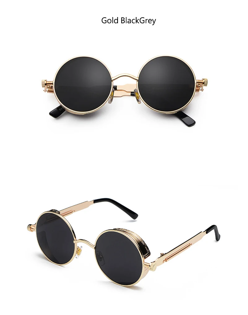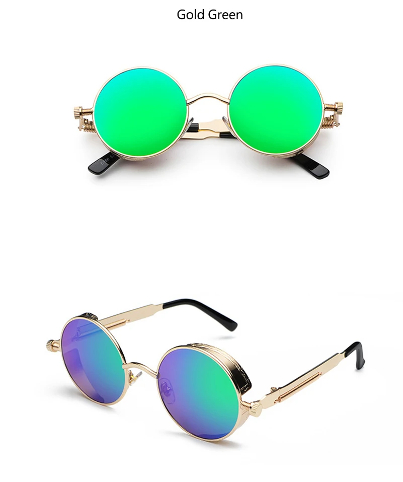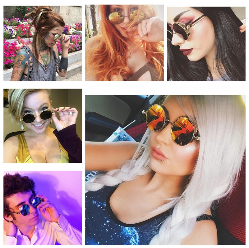 Солнцезащитные очки в круглой металлической оправе UV400 для мужчин и женщин, Классические готические, в стиле стимпанк, винтажные дизайнерские
