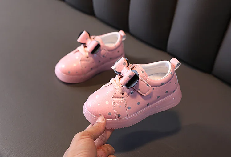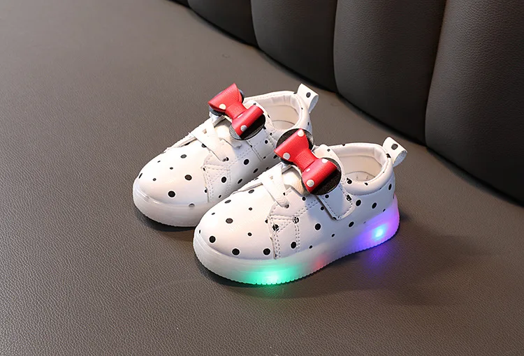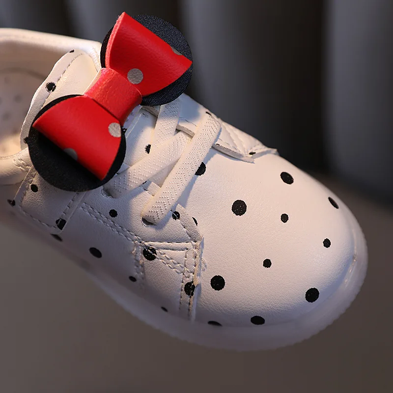 Disney chaussures pour enfants filles garçons noeud papillon enfants кроссовки dessin animé lumiere светодиодный botte lumineuse enfant appartements теннисные туфли для малышей bébé formateur