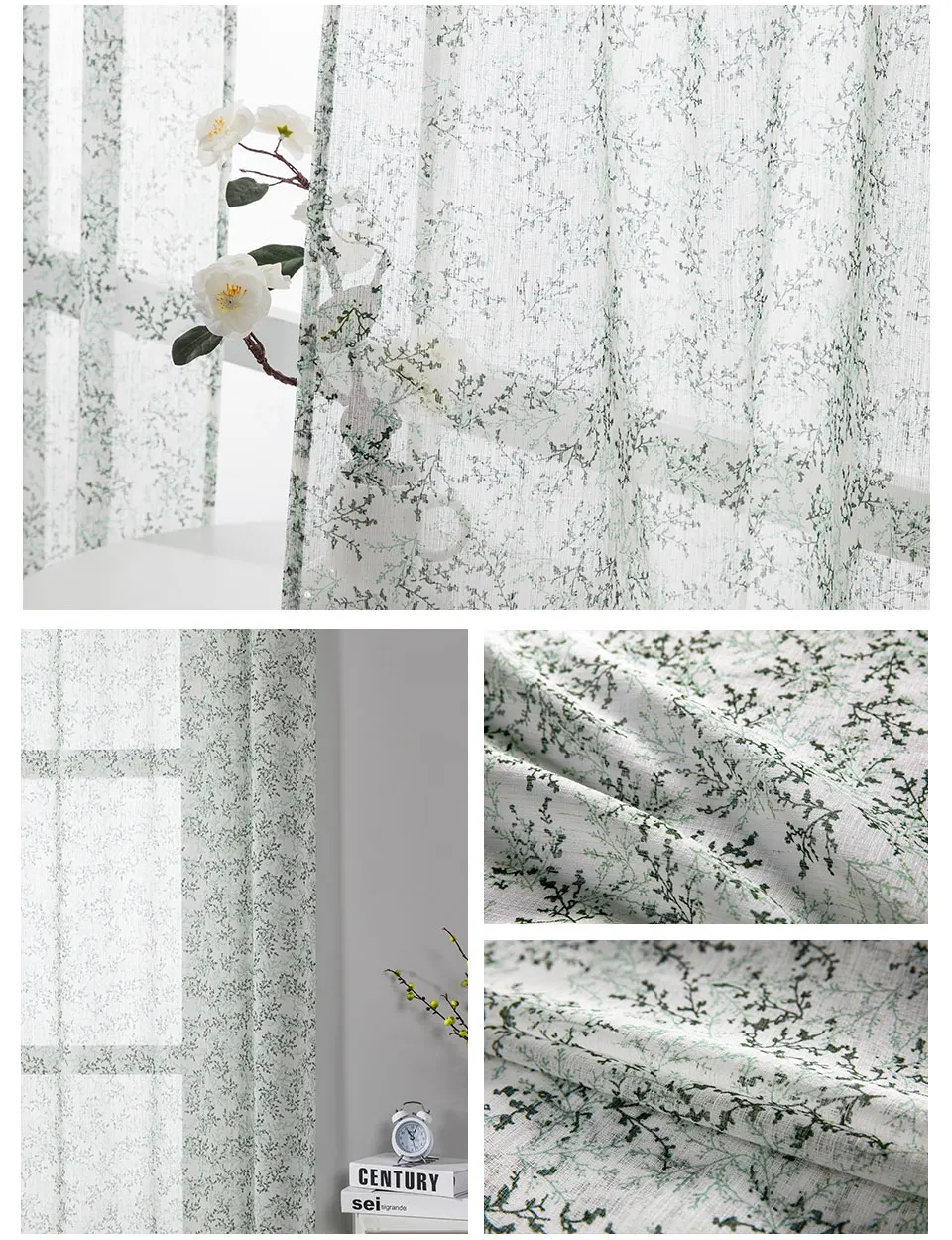 Полупрозрачные шторы MRTREEES, тюлевые шторы с зелеными листьями дл...