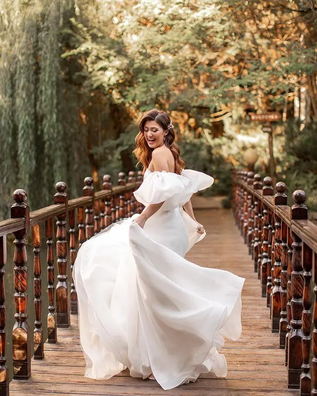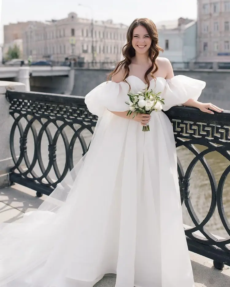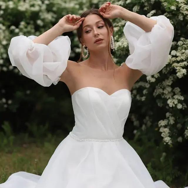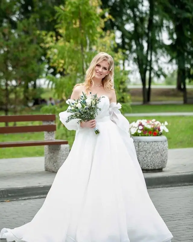 Романтические свадебные платья из органзы, элегантное Милое Свадебное платье-трапеция со съемными пышными рукавами, платья принцессы, 2022