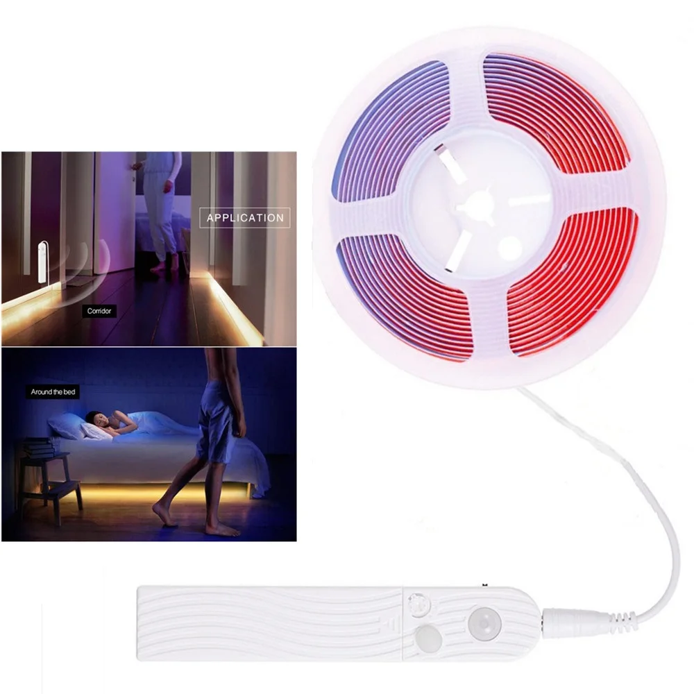 Светодиодная лента RA90 COB 5 в 320 светодиодовм, интеллектуальный датчик движения PIR, гибкая лента высокой плотности FCOB, светящаяся веревка с питанием от батареи USB
