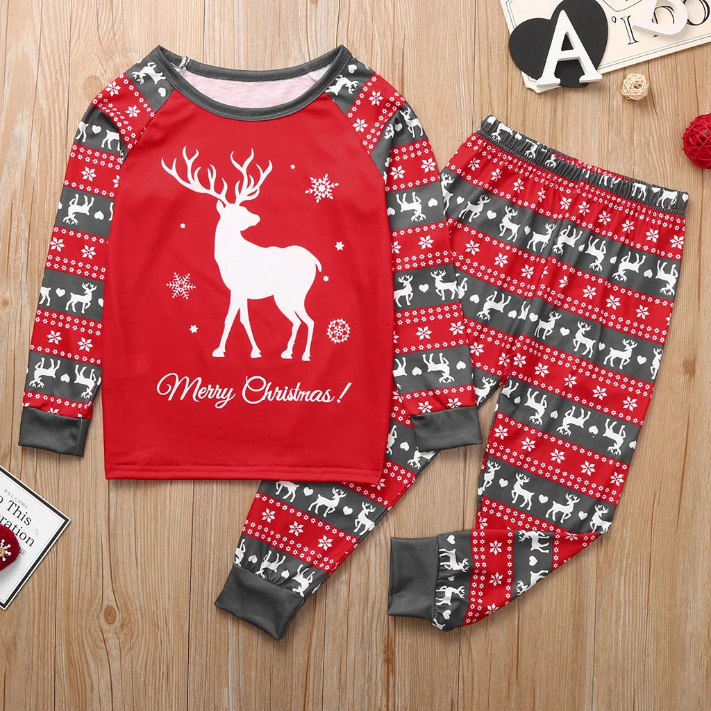 Семейный пижамный комплект с рождественским оленем, мягкая романтич...