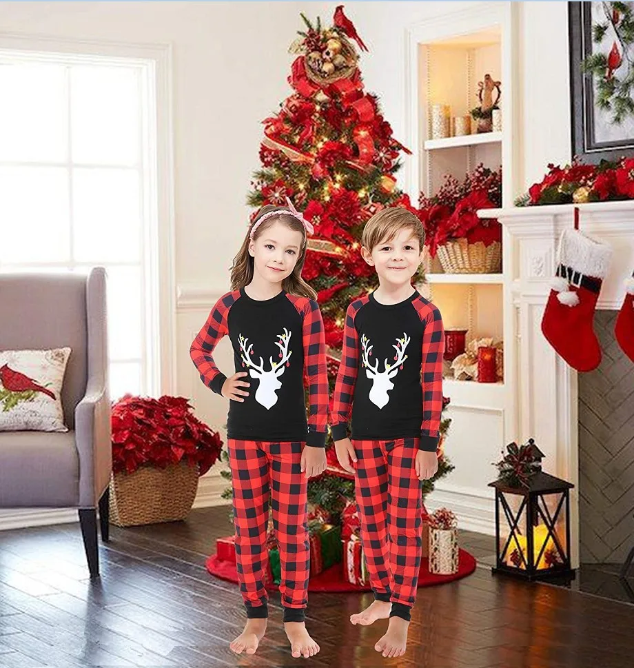 2021 Семейные рождественские пижамы, сочетающиеся с оленем, пижамны...