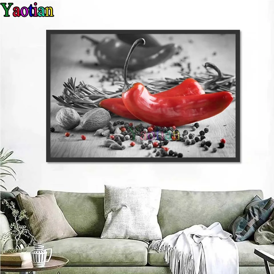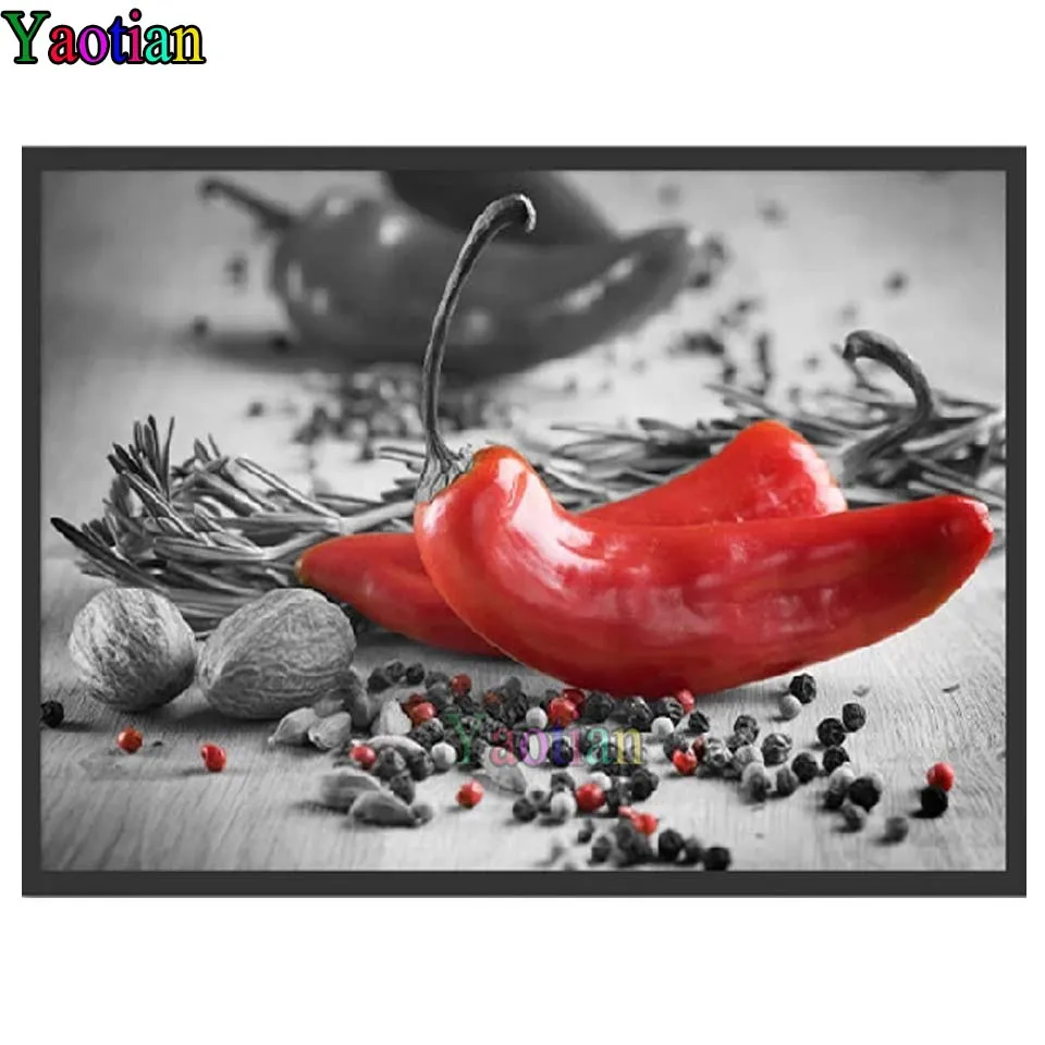 Алмазная живопись, кухонный декор, красный перец и специи, полное сверление, алмазная живопись из смолы, стразы, сделай сам, 5D квадратный мозаичный Рисунок