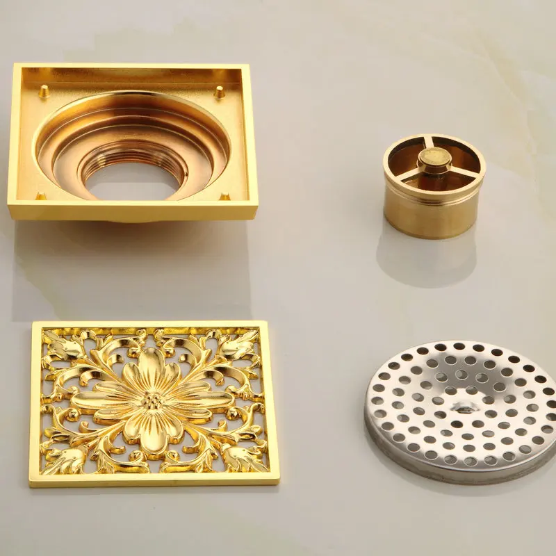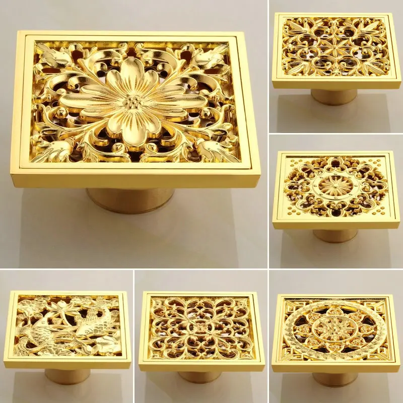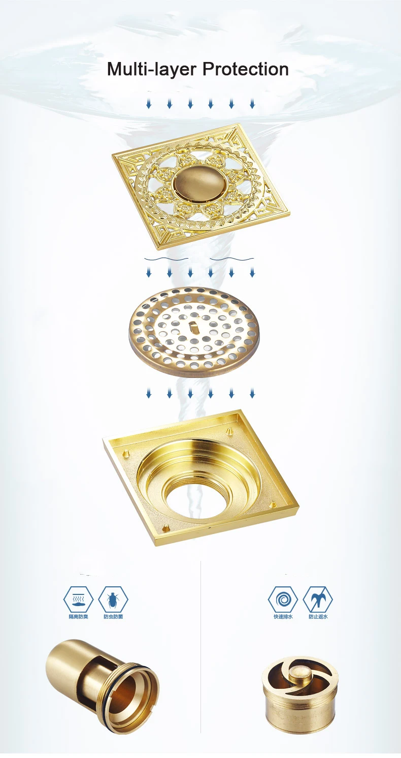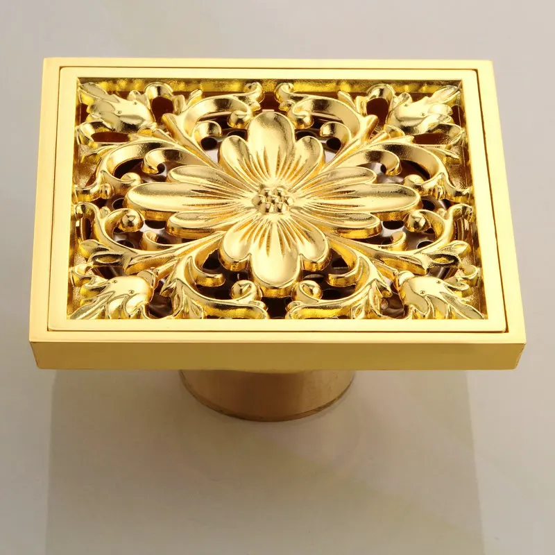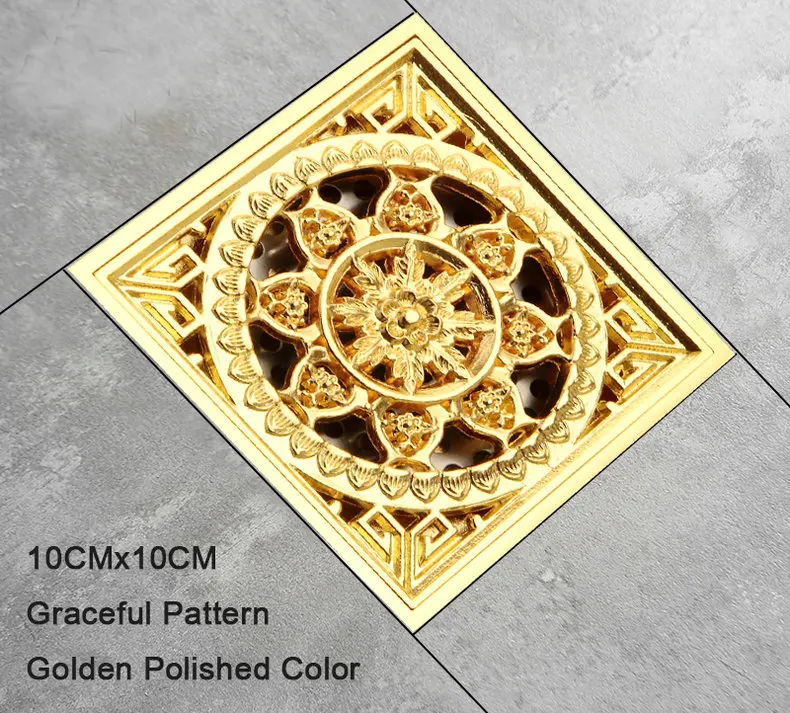 10x10 см латунный золотистый полированный Слив для пола Ванная комната Кухня душевая комната крыльцо квадратный пол слив отходов Решетка санитарный слив
