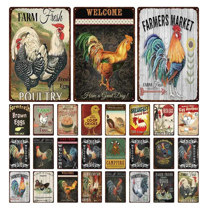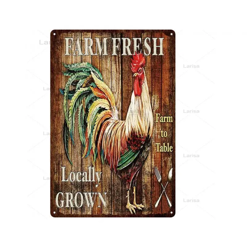 Ферма свежие яйца металлический знак курица говядина корова утка мя...