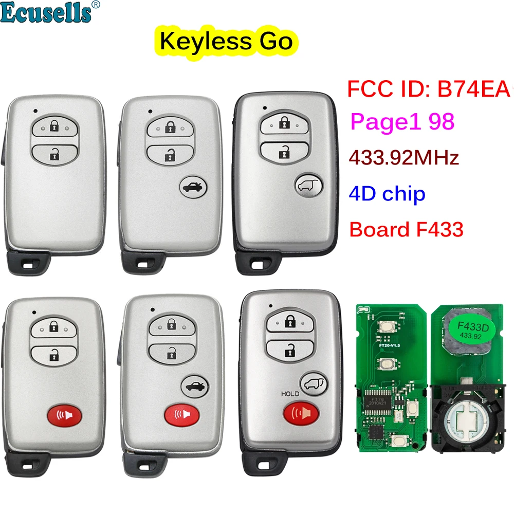 Умный БЕСКЛЮЧЕВОЙ дистанционный ключ FSK 433,92 МГц 4D чип для Toyota Camry PRUIS Land Cruiser Proda Corolla Avensis Board F433 FCC B74EA