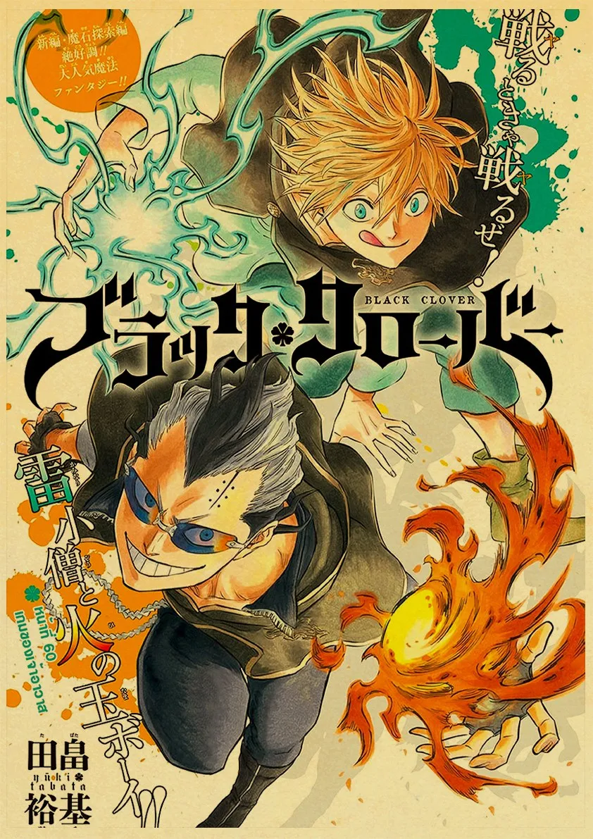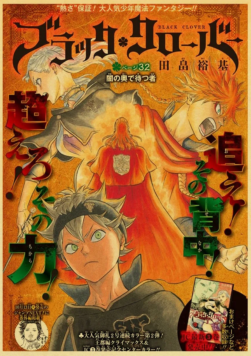 Черный клевер, японский подростковый аниме винтажный постер из крафт-бумаги манга, наклейка на стену для бара, комнаты, декоративные подарки для мальчиков