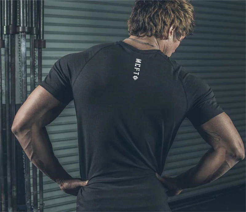 Новая мужская футболка с коротким рукавом, одежда для фитнеса и бод...