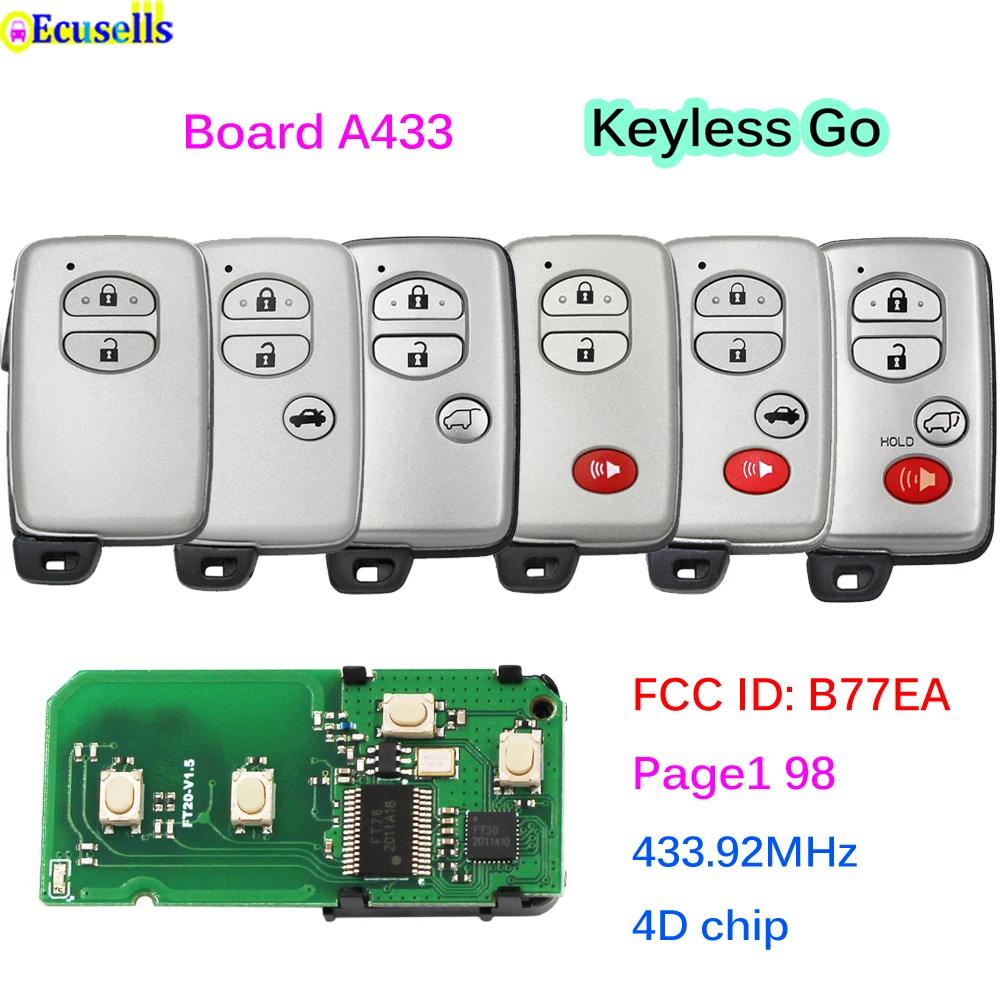 Смарт-Брелок дистанционного управления, 433,92 МГц, 4D чип для Toyota Land Cruiser Camry Corolla FCC B77EAB53EA P1 98 Board A433