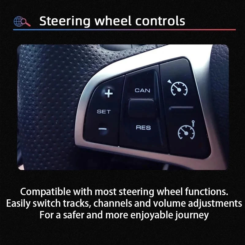 Функция управления рулевым колесом позволяет легко контролировать изменение песен, изменение радиоканалов и регулировка громкости через кнопки на руле. Сделайте ваше путешествие более безопасным и удобным