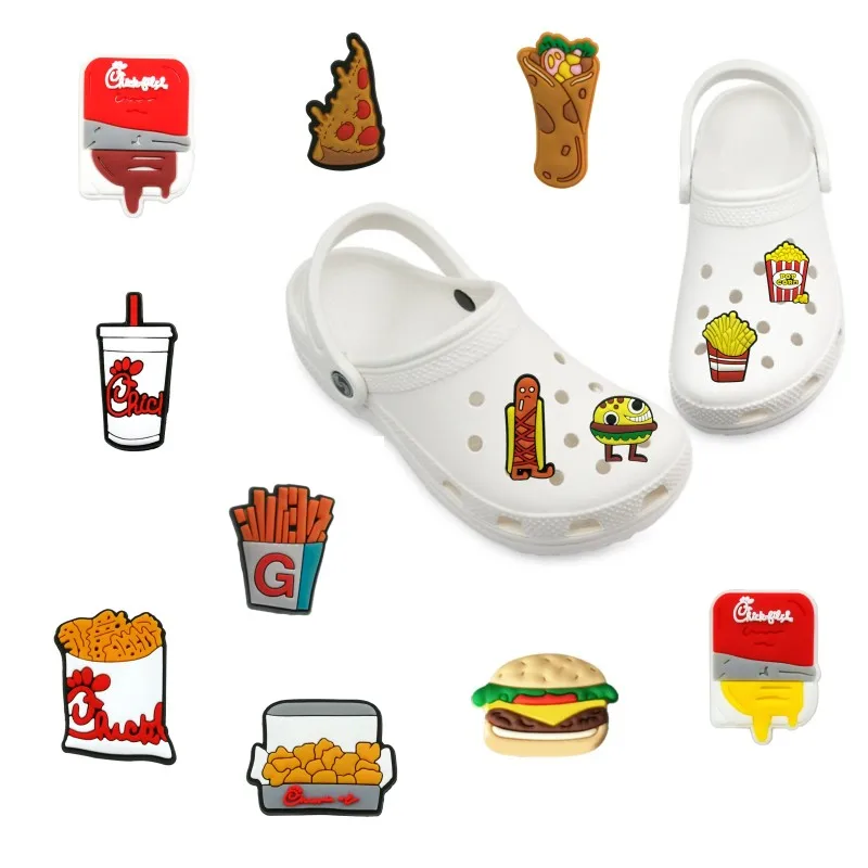 Подвески для обуви из ПВХ для фастфуда, 20-50 шт., подвески для картофеля фри, курицы, гамбургера, колы, кетчупа, салата, садовая сандалия, аксессуары