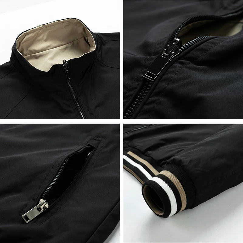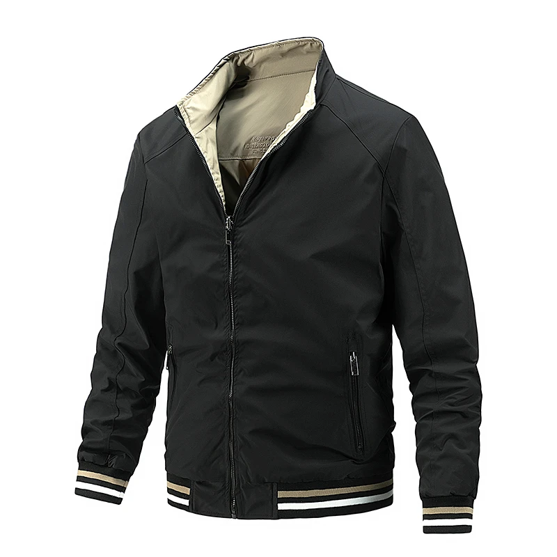 Мужская приталенная Двухсторонняя куртка, черная Повседневная ветрозащитная куртка, весна-осень 2021