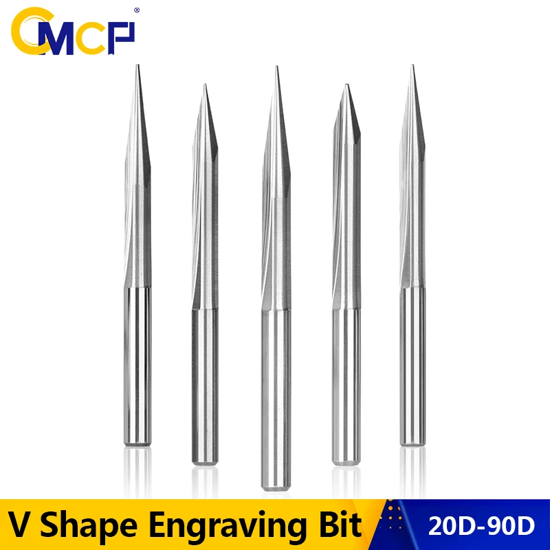 CMCP гравировальные биты 10 шт. 2030456090 градусов прямые V-образные твердосплавные концевые фрезы 3,175 хвостовик фреза с ЧПУ для деревообработки