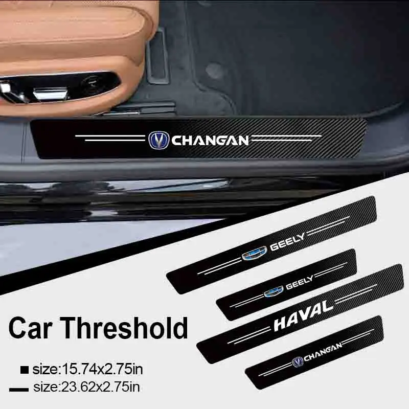 4 шт., протектор пороговой полосы для автомобиля, черное углеродное...
