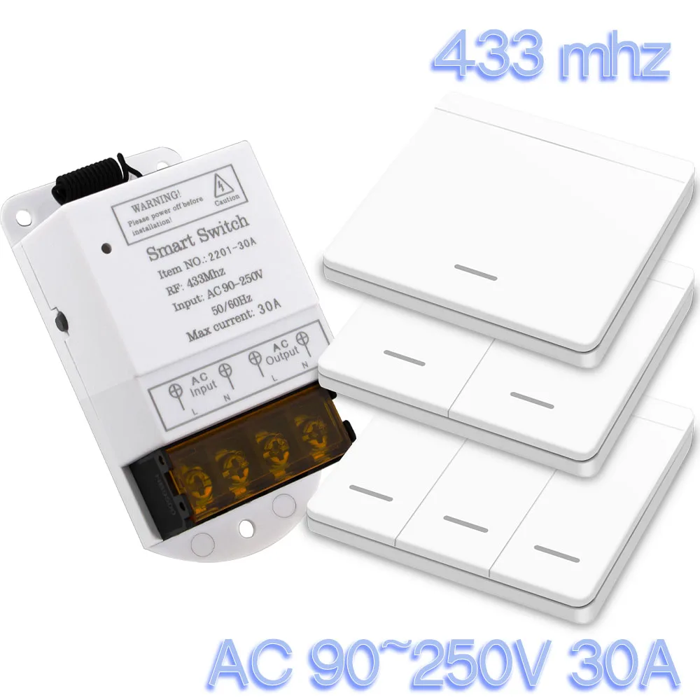 433 МГц РЧ кнопочный переключатель беспроводной вкл. Настенный переключатель и AC 110 В 220 В 30A высокомощный прерыватель, для насоса, светильник, вентилятор