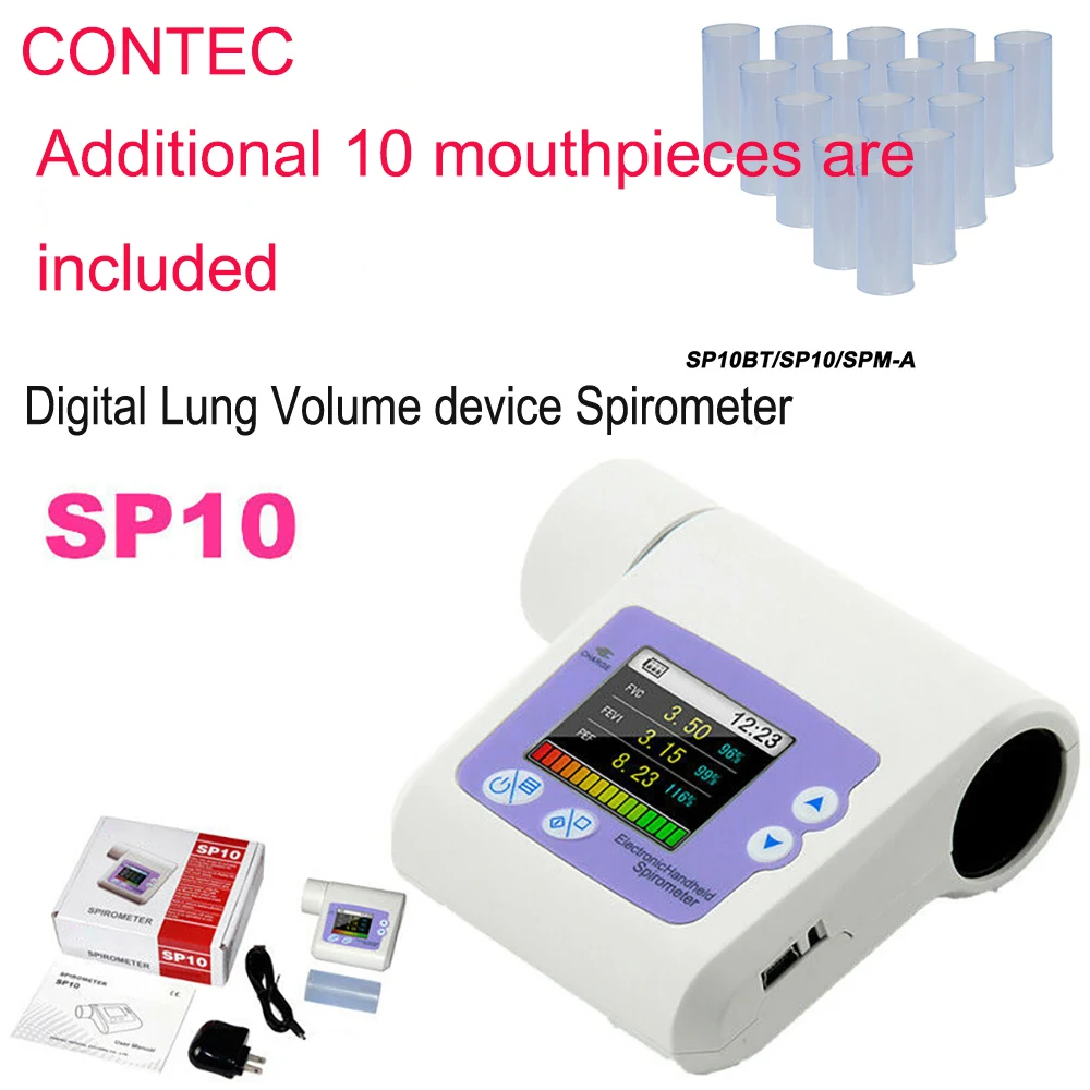 Цифровой Bluetooth спирометр CONTEC SP80B SP70B SP10, диагностический виталограф для дыхания легких, Спирометр поставляется с 10 мундштуками