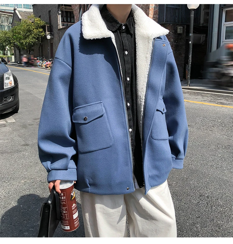Легкая Зимняя шерстяная куртка для мужчин, однотонное плотное тепло...