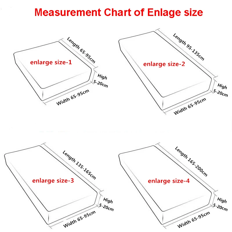 Увеличить размер-1: Длина 65-95 см/25,59-37,40 дюймов, Ширина 65-95 см/25,59-37,40 дюйма, Высота 5-20 см/1,97-7,84 дюймовУвеличить размер-2: Длина для детей ростом 95-135 см/37,40-53,15 дюймов, Ширина 65-95 см/25,59-37,40 дюйма, Высота 5-20 см/1,97-7,84 дюймовУвеличить размер-3: Длина 135-165 см/53,15-64,96 дюймов, Ширина 65-95 см/25,59-37,40 дюйма, Высота 5-20 см/1,97-7,84 дюймовУвеличить размер-4: Длина 165-200 см/64,96-78,74 дюймов, Ширина 65-95 см/25,59-37,40 дюйма, Высота 5-20 см/1,97-7,84 дюймовУвеличить размер-5: Длина 160-190 см/62,99-78,74 дюймов, Ширина 90-110 см/35,43-43,31 дюйма, Высота 5-20 см/1,97-7,84 дюймовЧехол для задней подушки: Длина 60-90 см/23,4-35 дюймов, Ширина 30-50 см/11,7-19,5 дюйма, Высота 5-20 см/1,97-7,84 дюймов