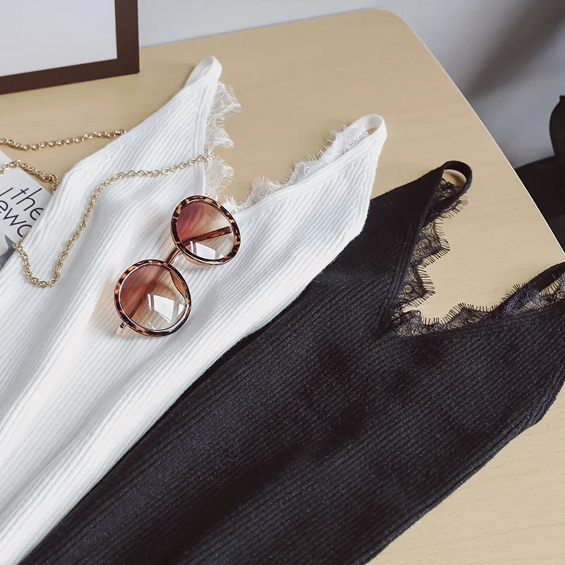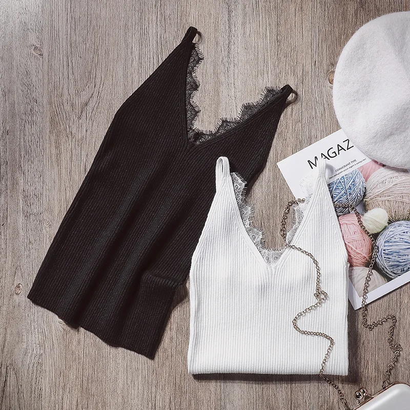 Топ женский кружевной, без рукавов, с V-образным вырезом, на осень