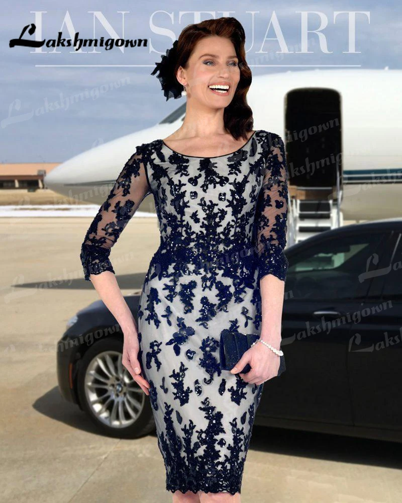 Элегантное темно-синее кружевное платье для матери невесты с рукавом до локтя свадебное гостевое платье вечерние платья до колен с аппликацией