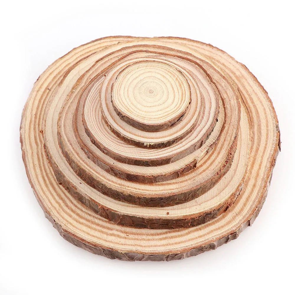 3-12 см толщиной, 1 упаковка, натуральная сосна, круглые необработанные деревянные ломтики, круги с корой дерева, диски сделай сам, ремесла, картина для свадебной вечеринки