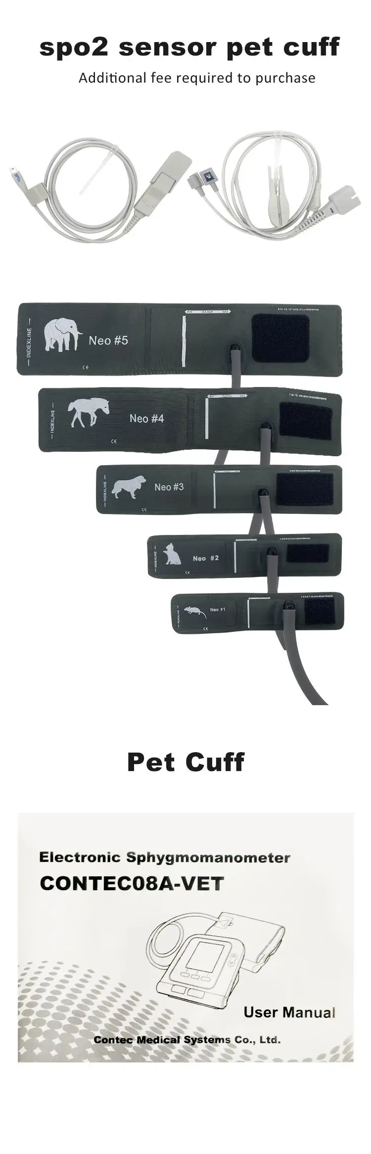 Сфигмоманометр CONTEC08A Vet, цифровой прибор для измерения уровня кислорода в крови, 3 размера, с USB программным обеспечением