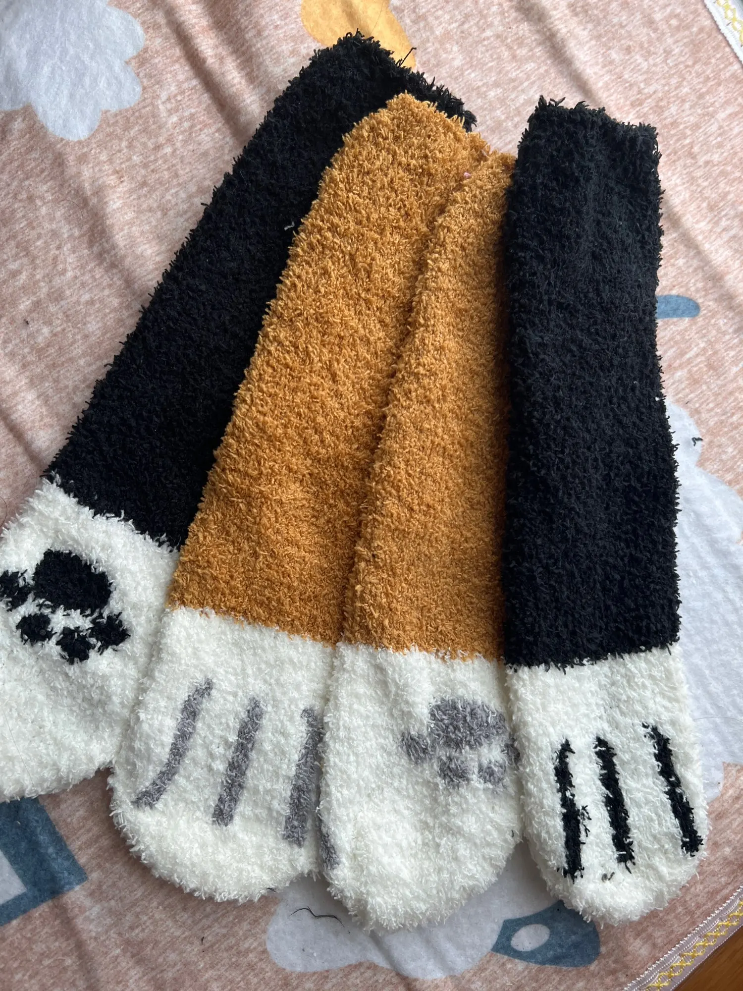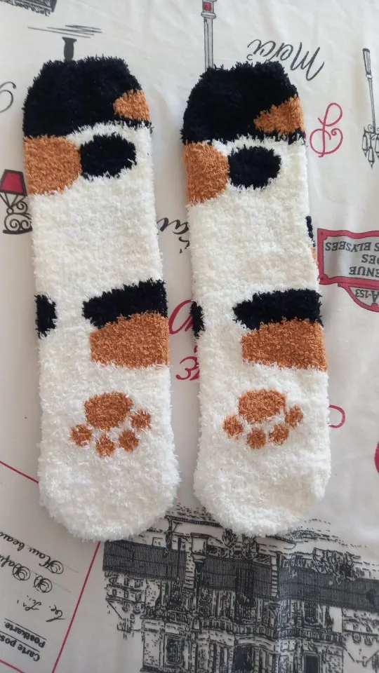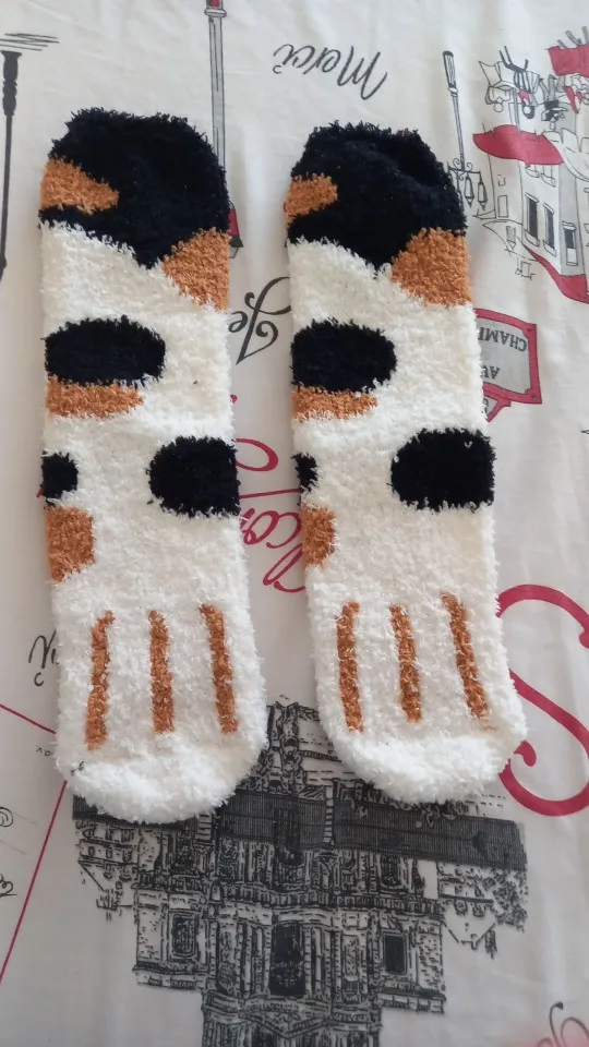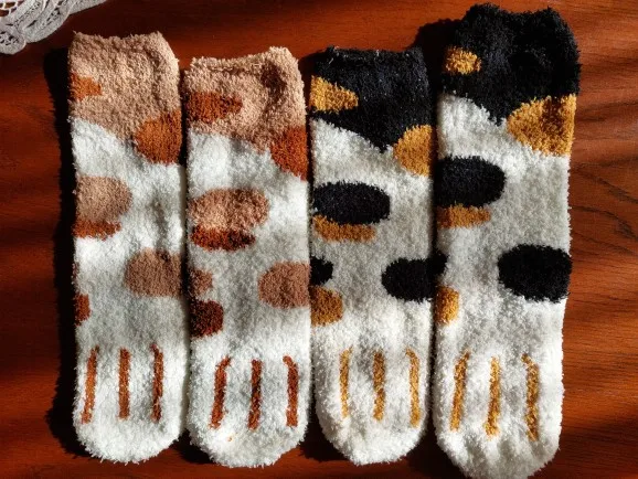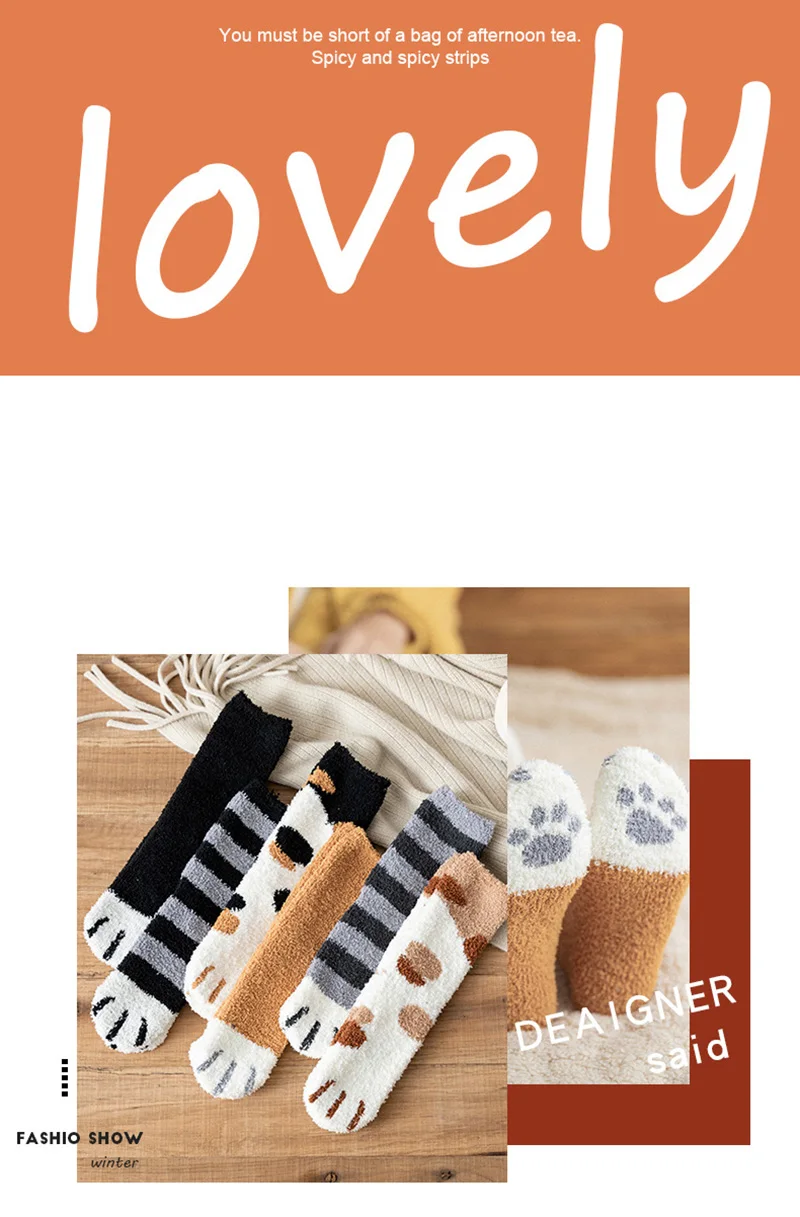 Зимние носки, женские толстые теплые носки из кораллового флиса, милые носки с животными, кошачьими лапами, мягкие носки для девочек