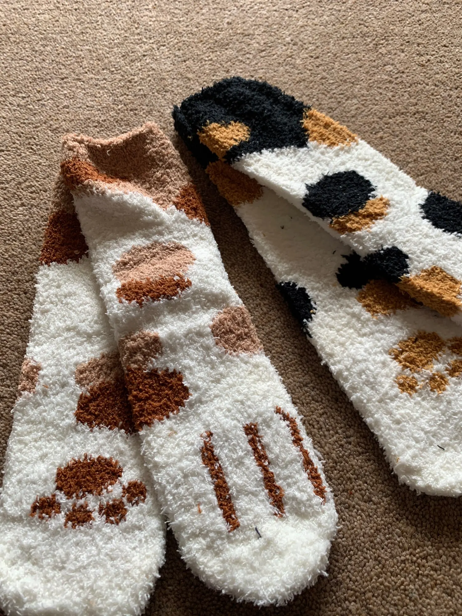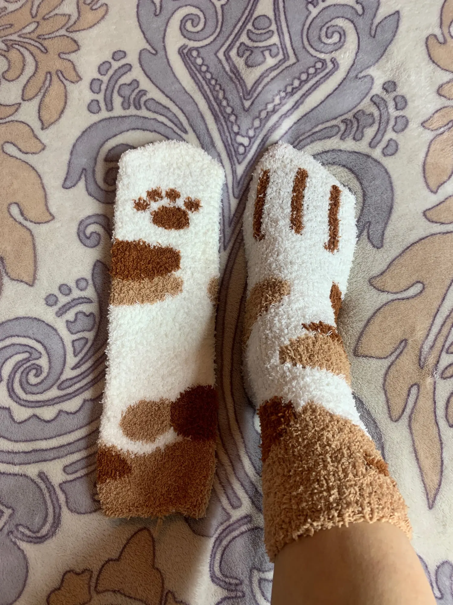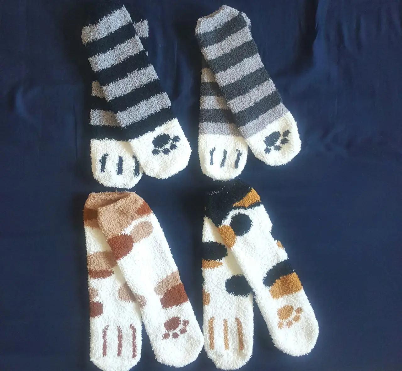 Зимние носки, женские толстые теплые носки из кораллового флиса, милые носки с животными, кошачьими лапами, мягкие носки для девочек