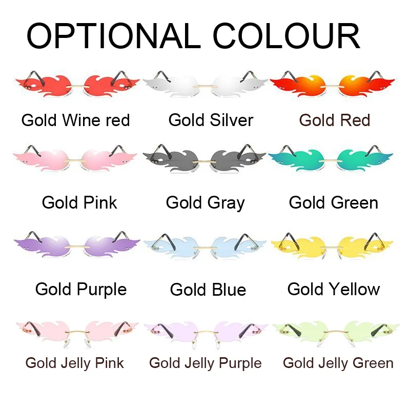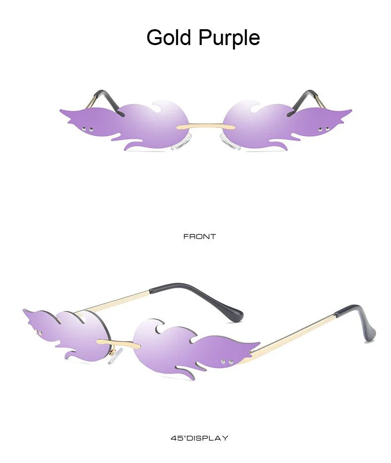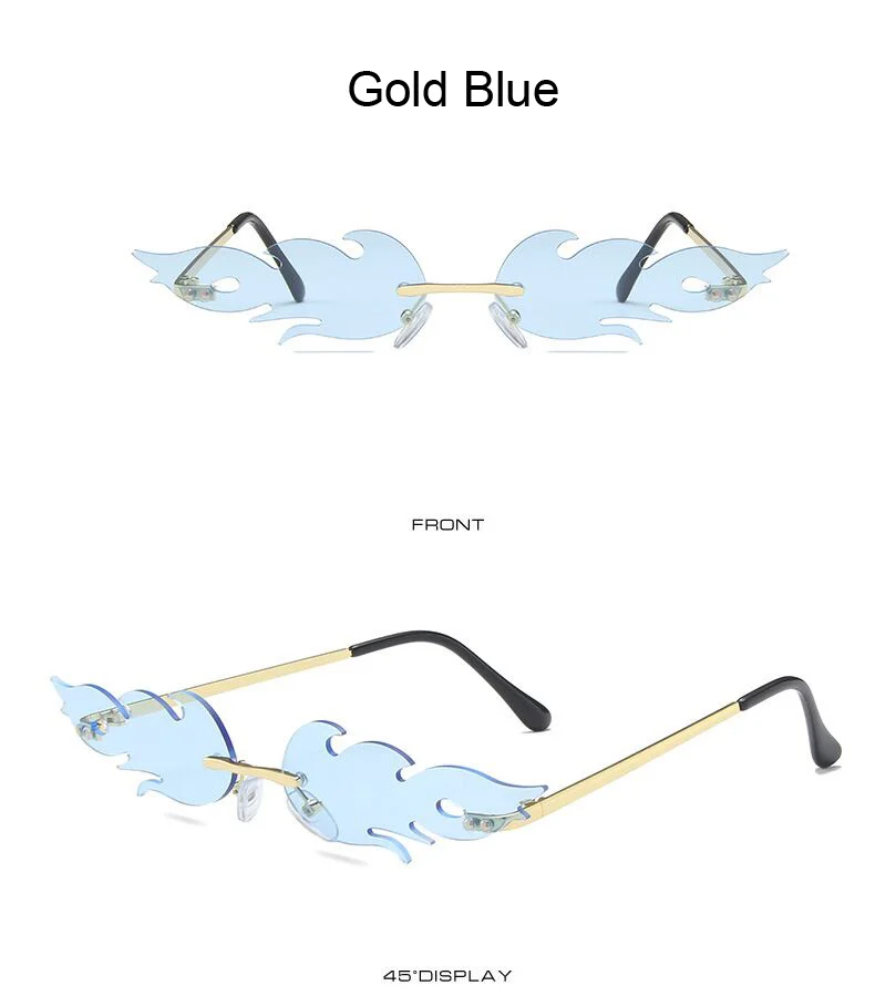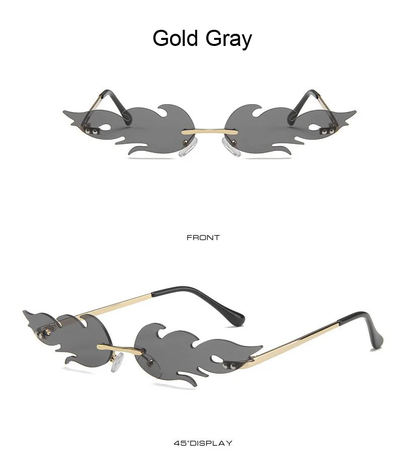 Солнцезащитные очки без оправы с волнистыми линзами, очки с огненны...