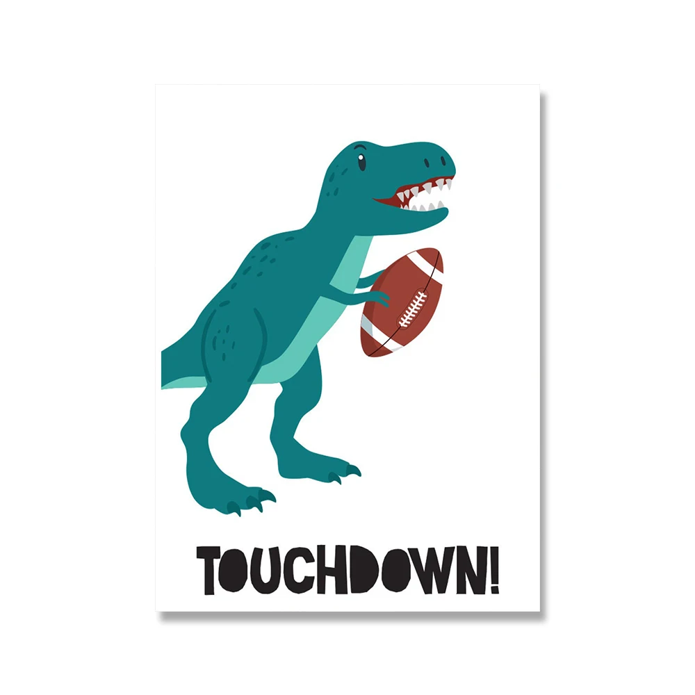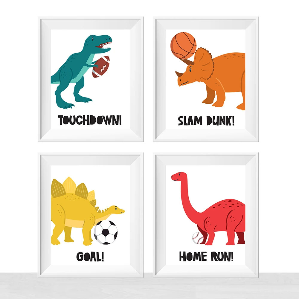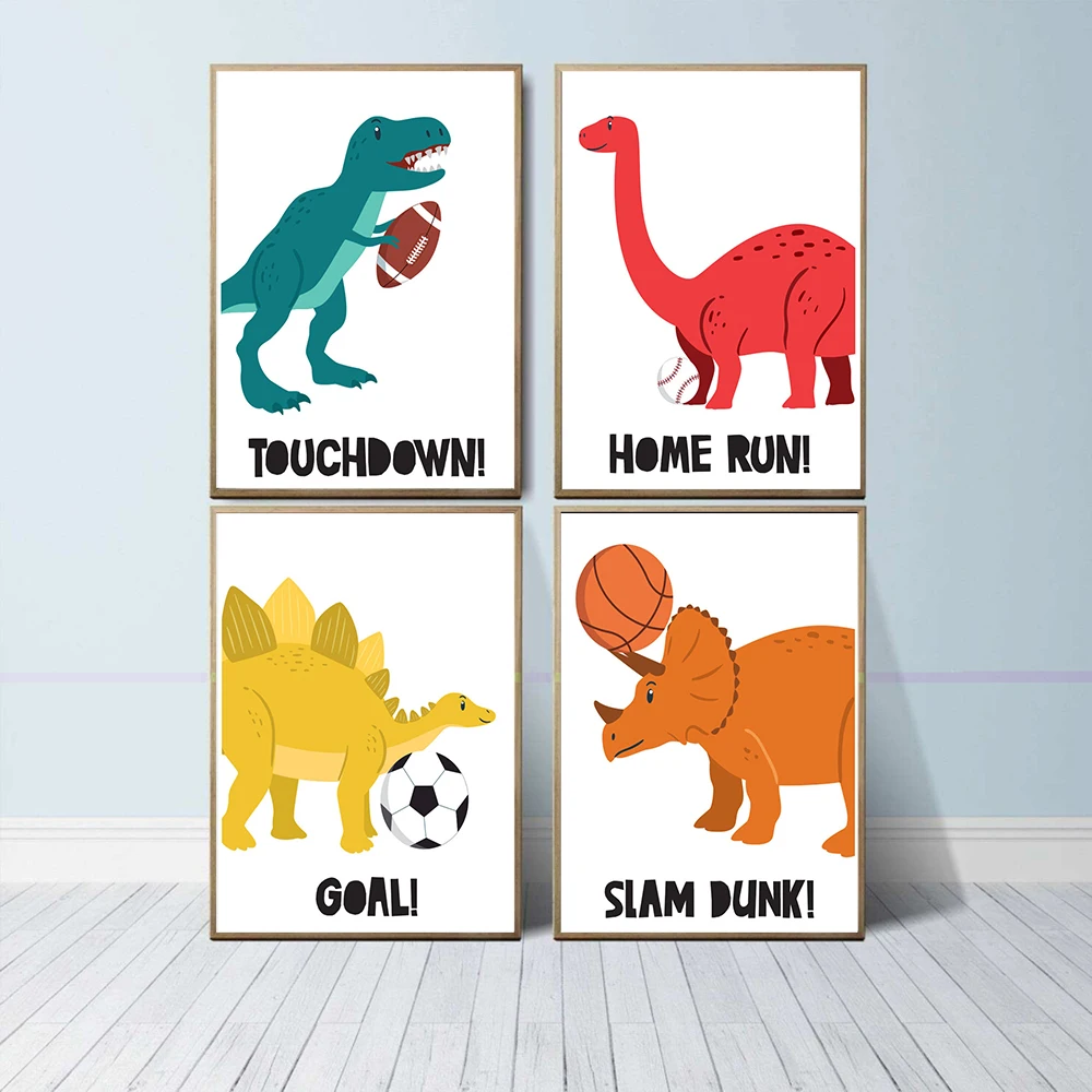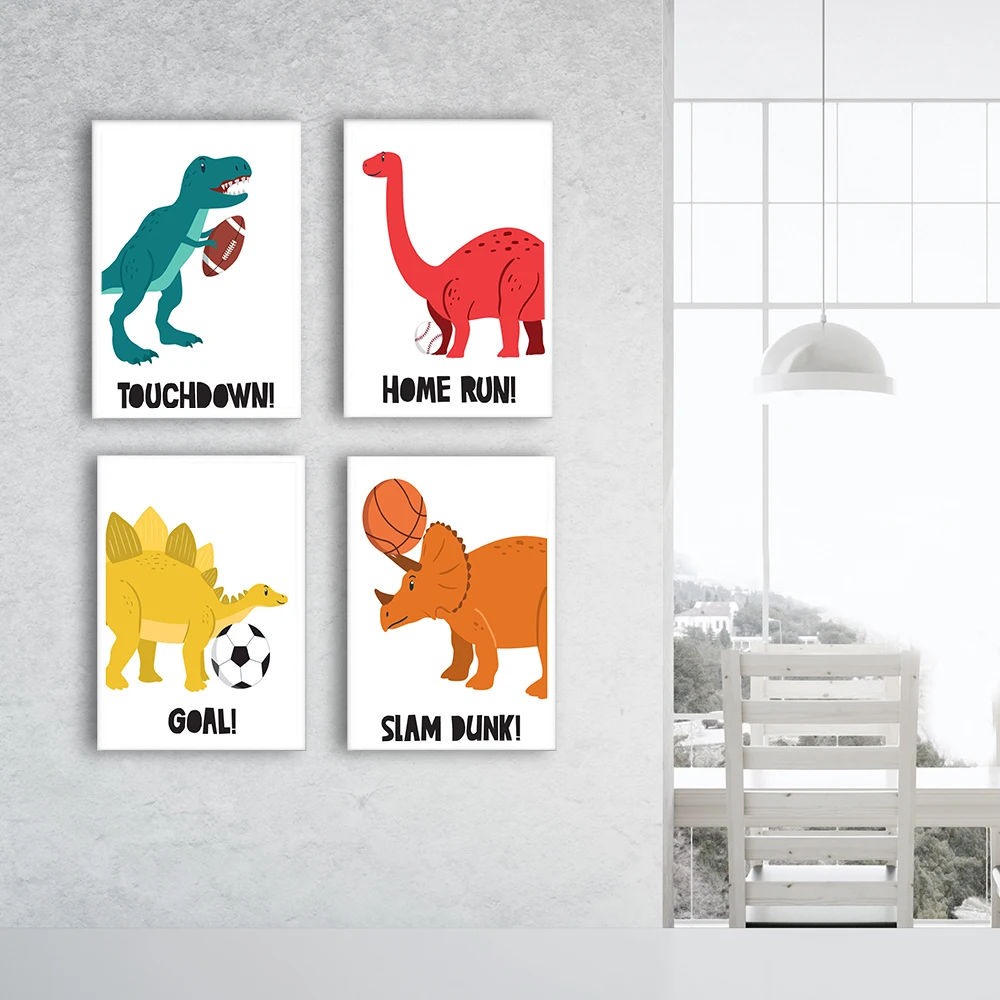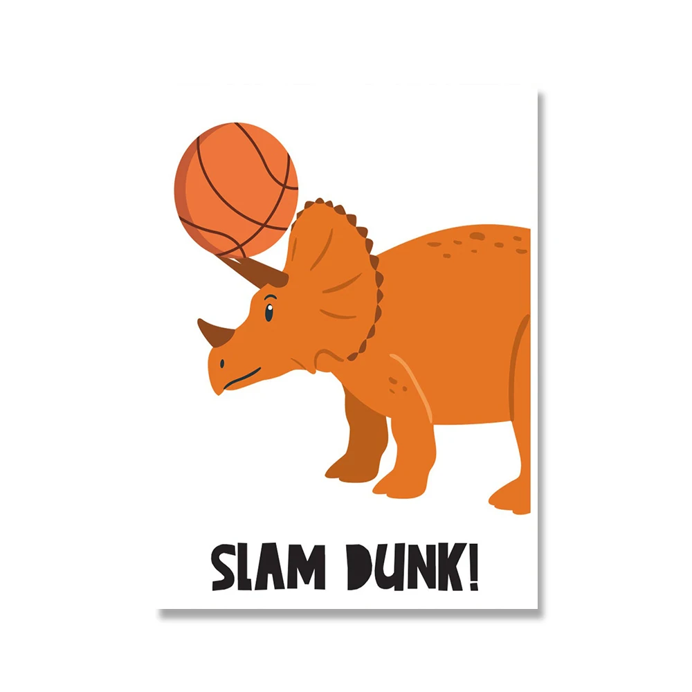 Скандинавские искусственные динозавры с спортивными шарами, тематическая Картина на холсте, детская игровая комната, художественные картины, детская спальня, домашний декор