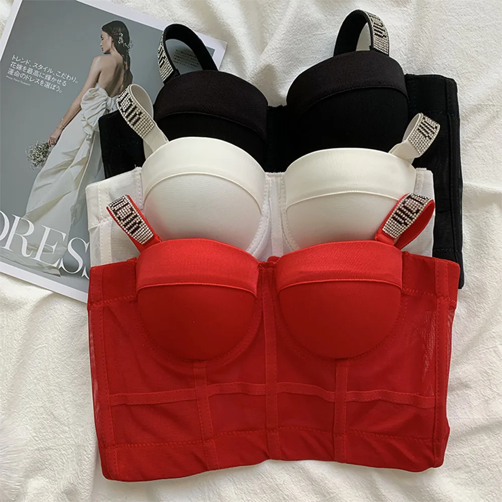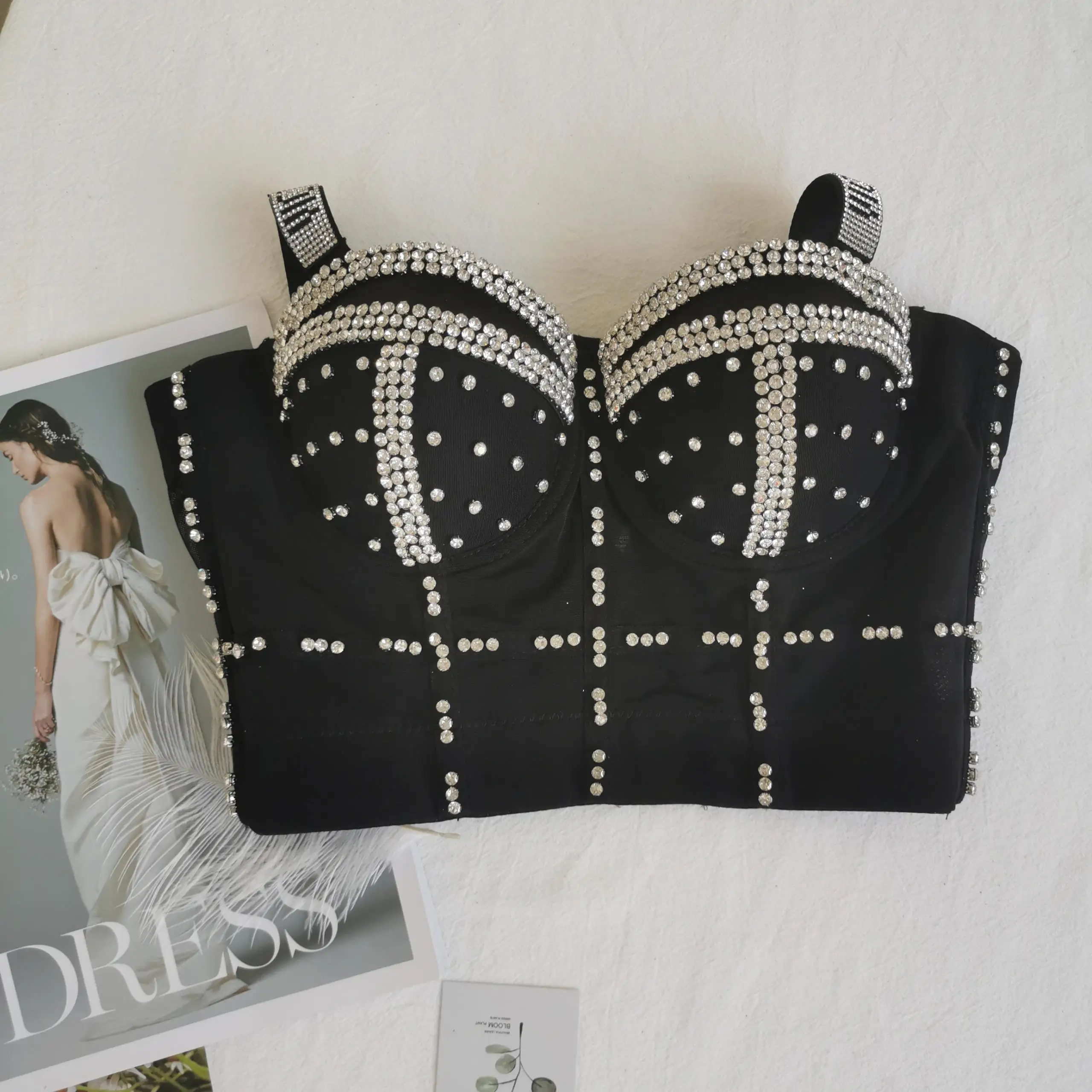 Сексуальный Повседневный Женский корсет Стразы, винтажный жилет, майка с лямкой на шее, брендовые дизайнерские топы, женский бюстгальтер с открытой спиной, кофта