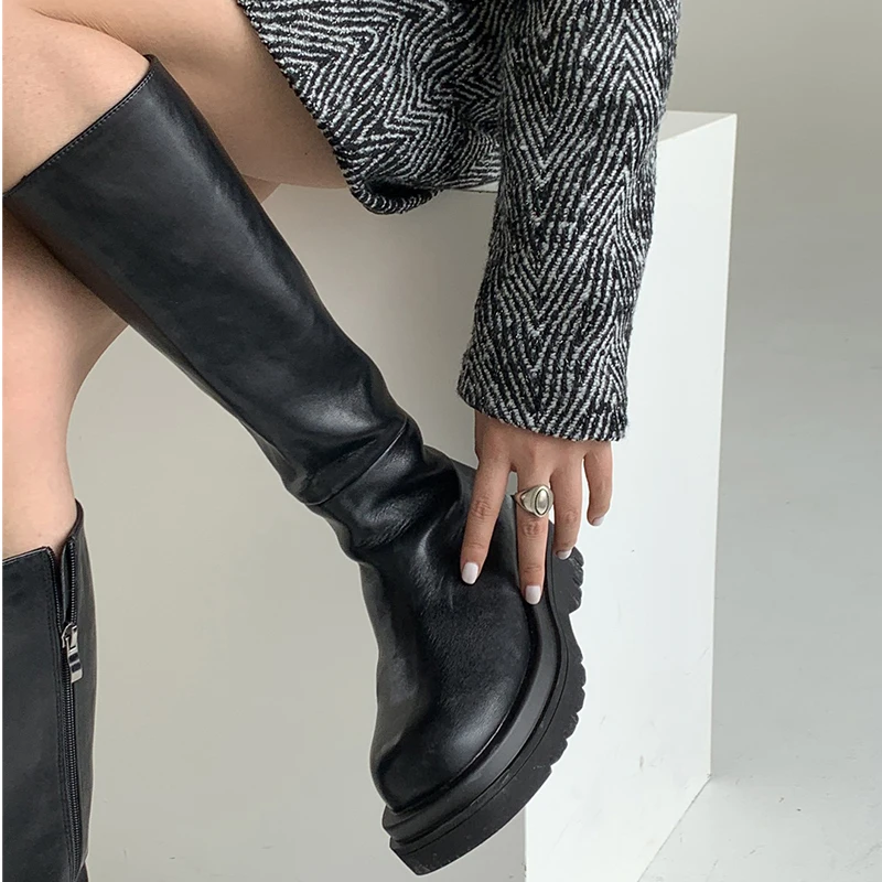 Зимние женские сапоги до колена на высокой платформе 2022 Новая женская обувь на молнии из искусственной кожи мотоциклетные сапоги модная массивная обувь в стиле панк