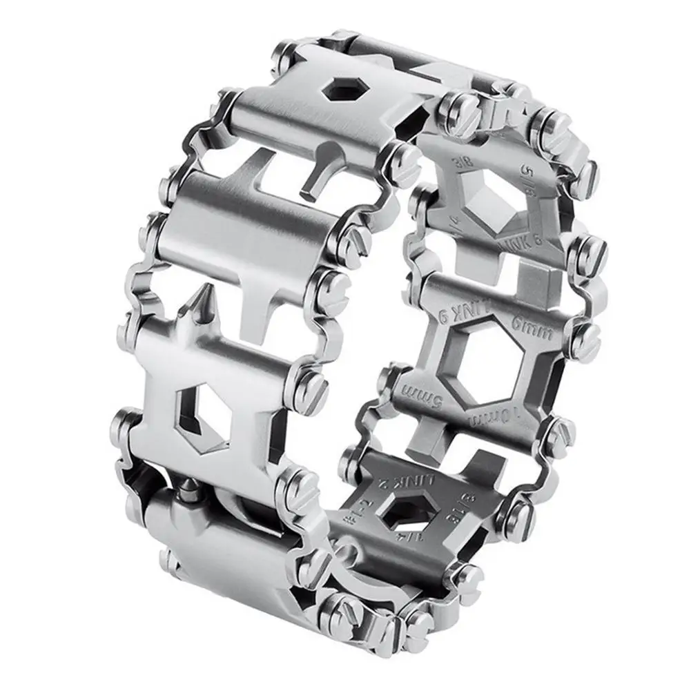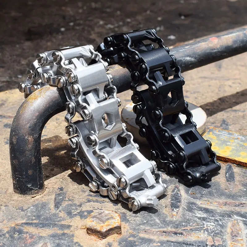 1. Каждая стальная цепь соответствует инструменту, включая отвертку, консервный нож, открывалку для бутылок и шестигранный ключ. 29 стальных цепей могут быть случайным образом объединены или использовать меньше деталей, чтобы стать браслетом.