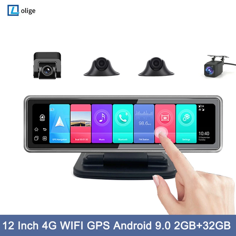 Видеорегистратор автомобильный на зеркало заднего вида, 12 дюймов, 4 канала, Android 9,0, 2 + 32 ГБ